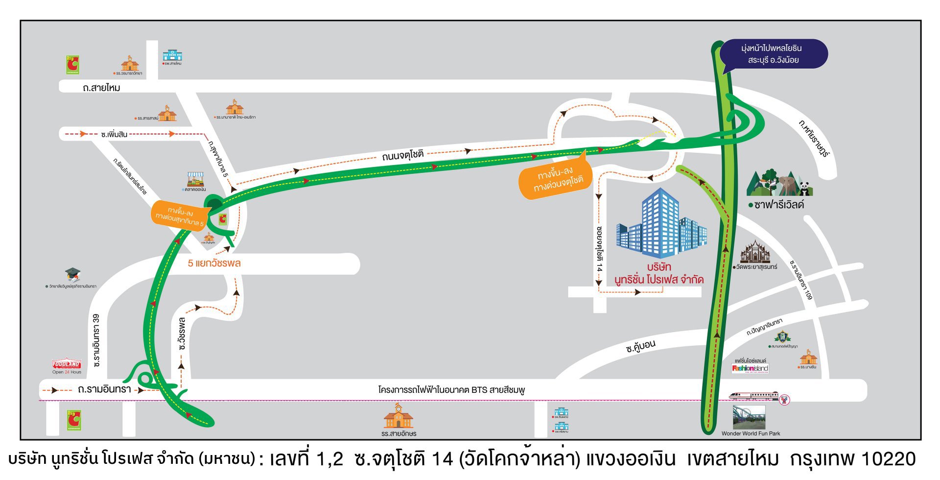 1,2 ซอยจตุโชติ 14 (วัดโคกจ้าหล่า) แขวงออเงิน เขตสายไหม กรุงเทพฯ 10220