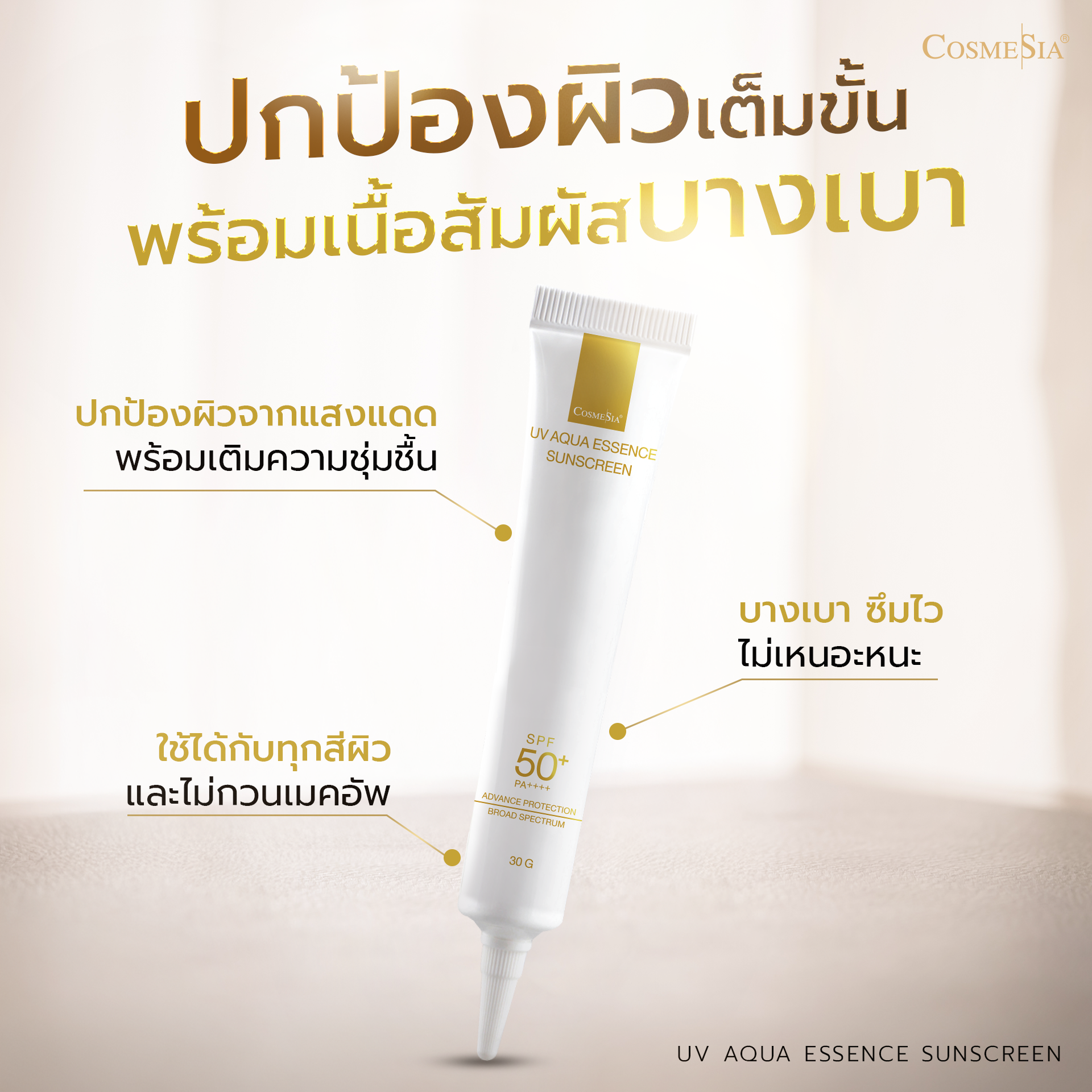 เอสเซนส์กันแดด SPF 50+ PA++++ เนื้อบางเบาที่ช่วยปกป้องผิวแบบ X3 ทั้งรังสียูวี (UVA/UVB), แสงสีฟ้า (BLUE LIGHT) และมลภาวะต่างๆ (ANTI POLLUTION) โดยจะทำหน้าที่เป็นฟิล์มบางๆ บนผิวคอยดูดซับรังสียูวี และแสงสีฟ้า พร้องทั้งดักจับสิ่งสกปรก โลหะหนัก ควันบุหรี่และฝุ่นละอองขนาดเล็ก (PM 2.5) ไม่ให้ซึมสู่ผิว หรืออุดตันรูขุมขนด้วยสูตรเฉพาะผสานไฮยาลูรอน ดอกโบตั๋นและวิตามินอี